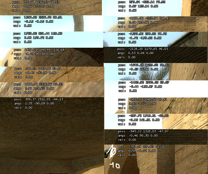 Once this appears, we must go to the position where we want the hostage to be spawn and for each spawn that we want to do, we must copy the pos and ang values in the position where the spawn will be and paste them into the text file that we created (all in the same line). Let's imagine that what shows what came out after they typed the command cl_showpos 1 in the game console were variables, for example:
