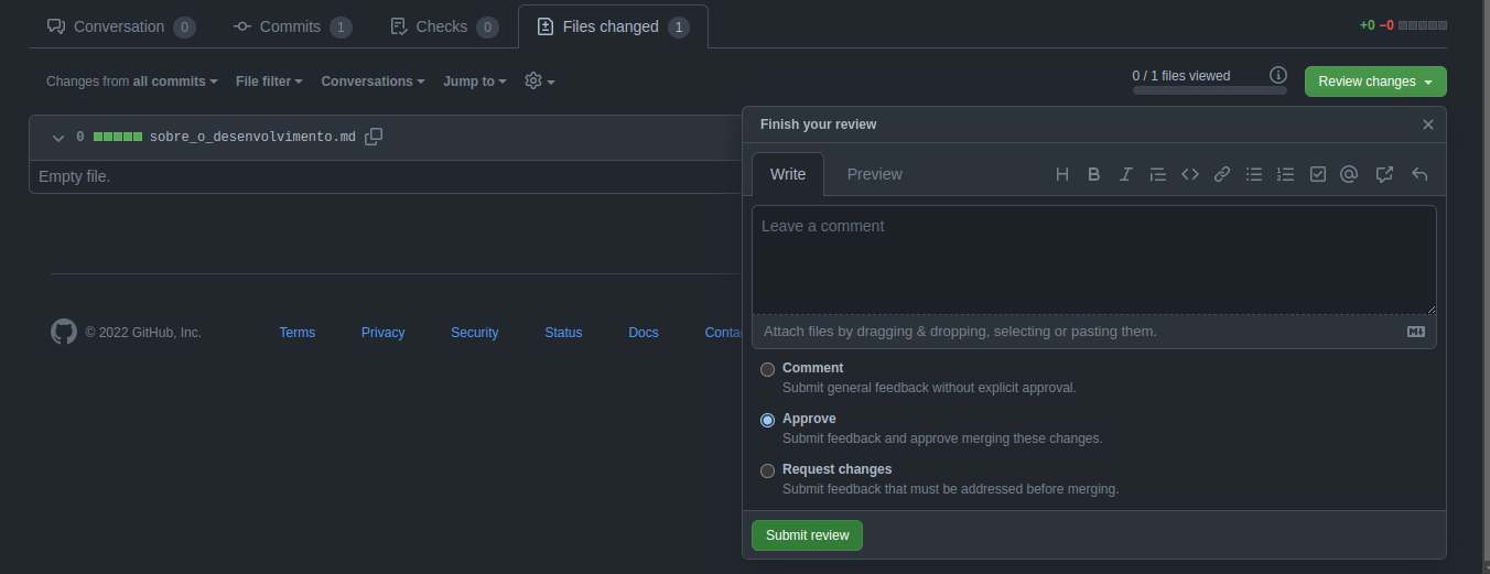Clicando em Add your review será apresentado as alterações e o que esta sendo solicitado aprovação e o botão para adicionar um review: