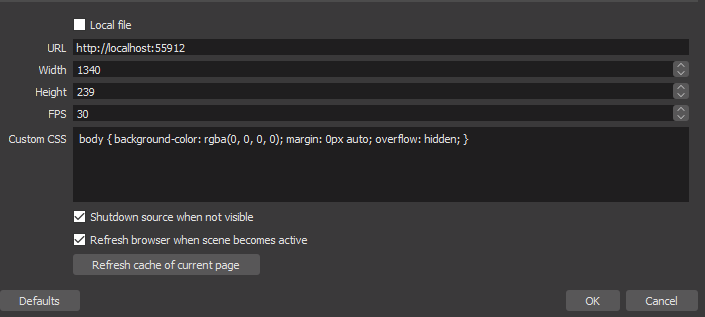 Hiding the source and reloading it will refresh the webpage the overlay is sourced from if my settings are used. Until you've started the music player for the first time, you probably won't see anything other than some leftover values I had.