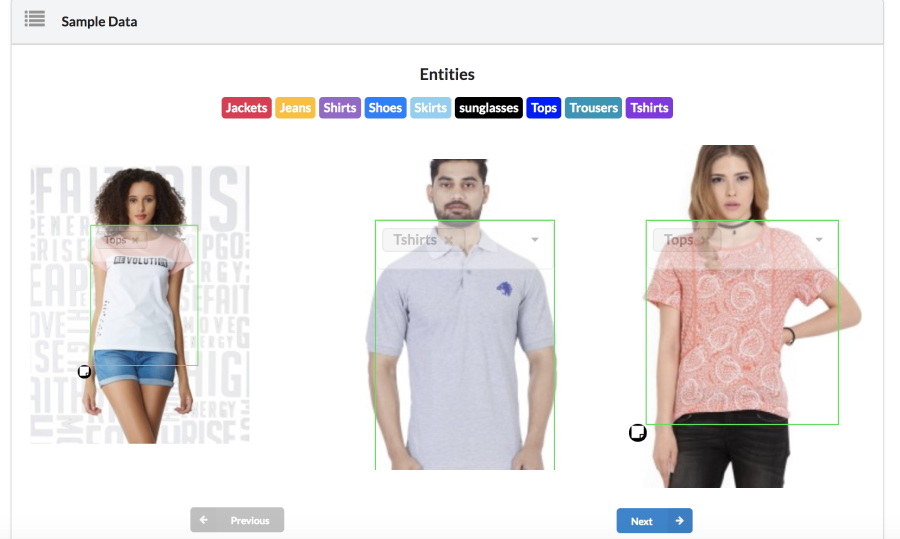 The models used were the inbuilt TensorFlow models for object detection customized for the classification of our data. The categories for the classification were: Shirts, T-shirts, Jackets, Jeans, Trousers, Sunglasses, Shoes, Tops, Skirts. There are multiple models available in TensorFlow details of which can be found at this link.