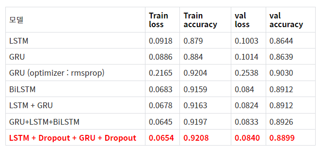 LSTM과 GRU를 섞은 것이 결과도 가장 좋았다.