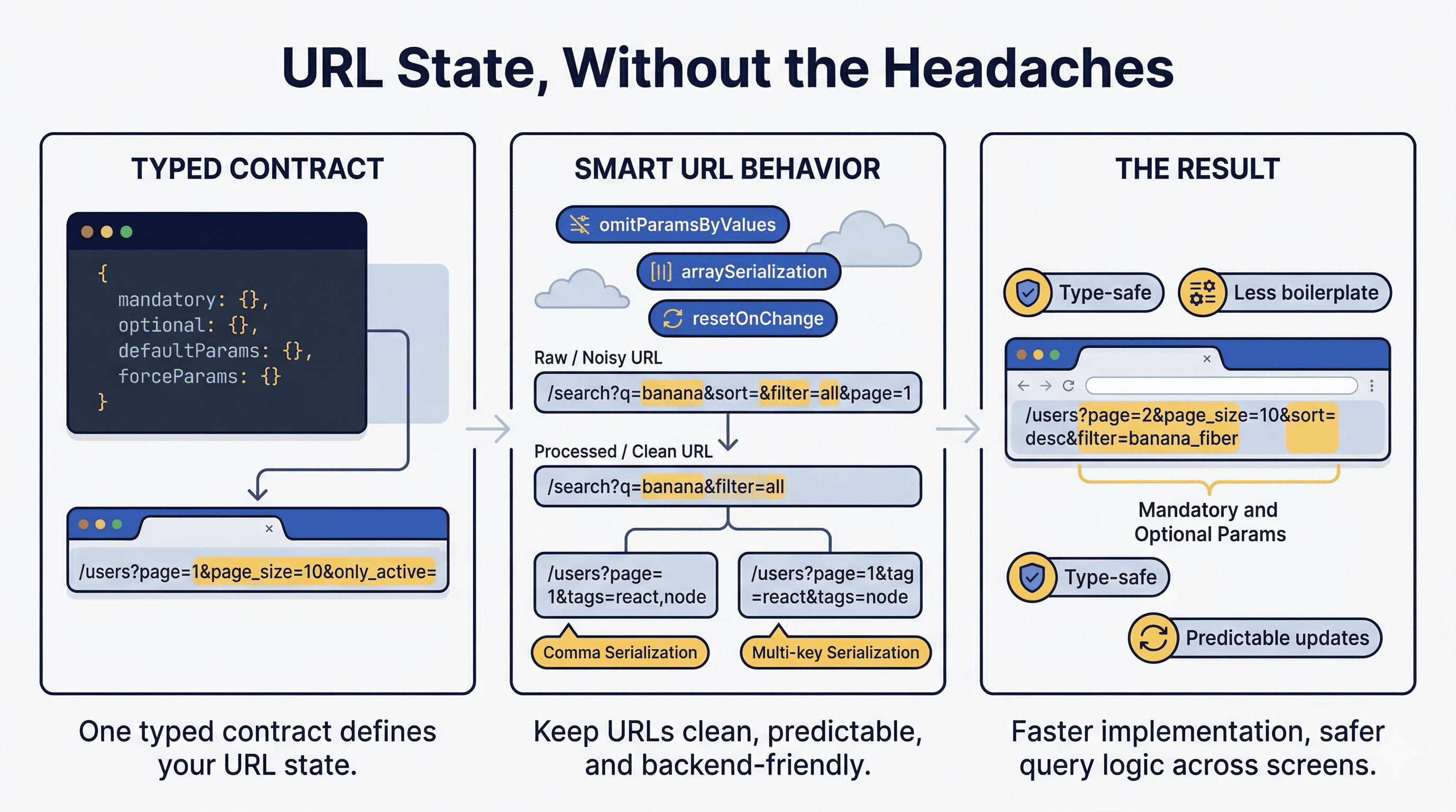 Without a shared abstraction, each page usually re-implements parsing and update logic differently. This hook solves that by enforcing one typed contract per view.