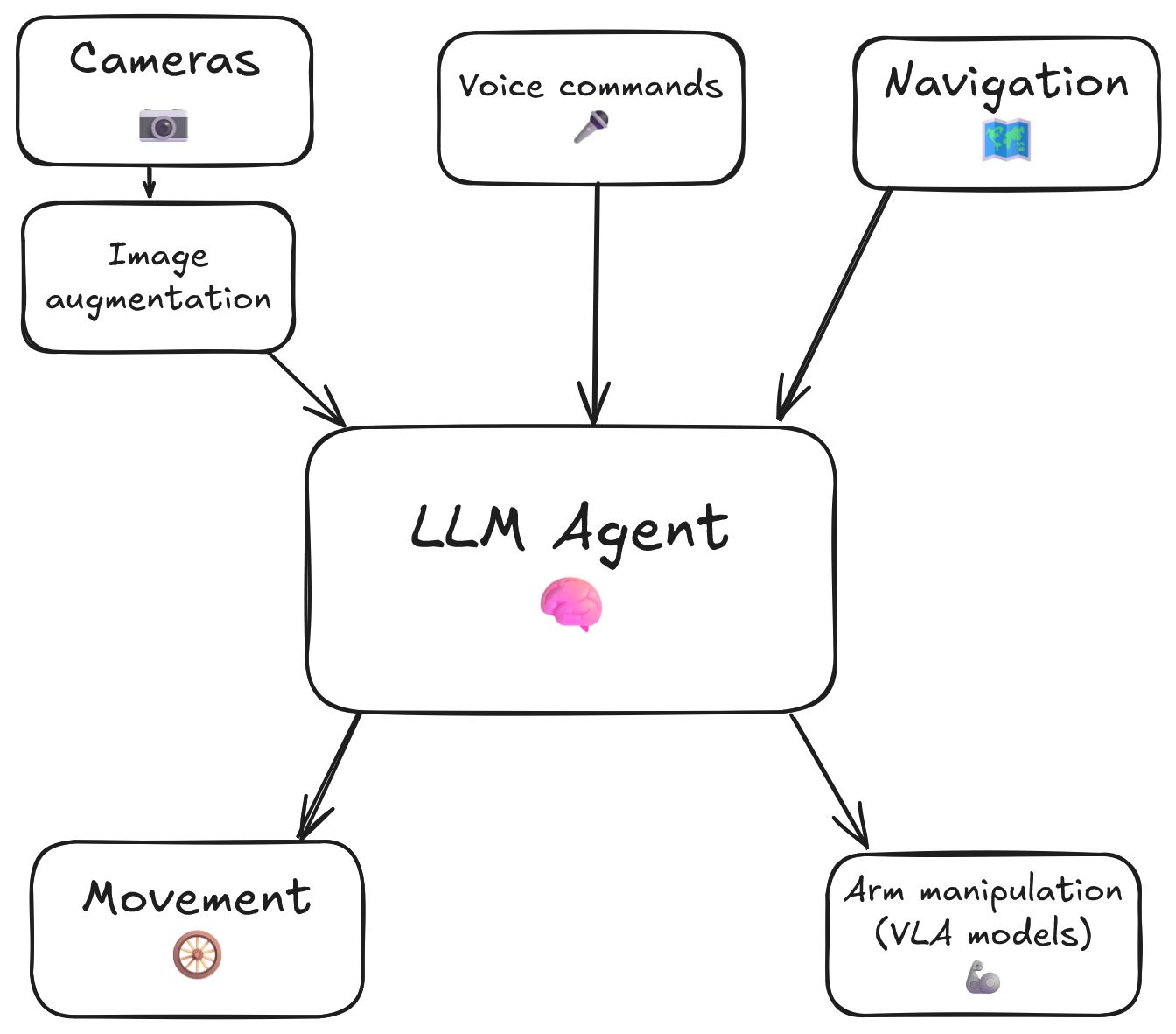 Create LLM agent for your robot. Connect movement tools, VLA policies and sensor scans just in a few lines of code.