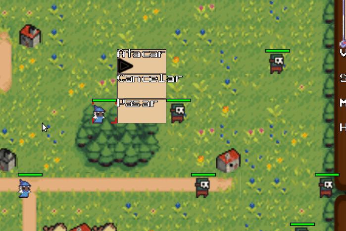 Para saber que puede hacer el personaje actual, tenés que mover el selector hasta que este encima y apretar Z, que va a ser la tecla de acción principal. Esto abre un menu como el que se muestra a continuación: