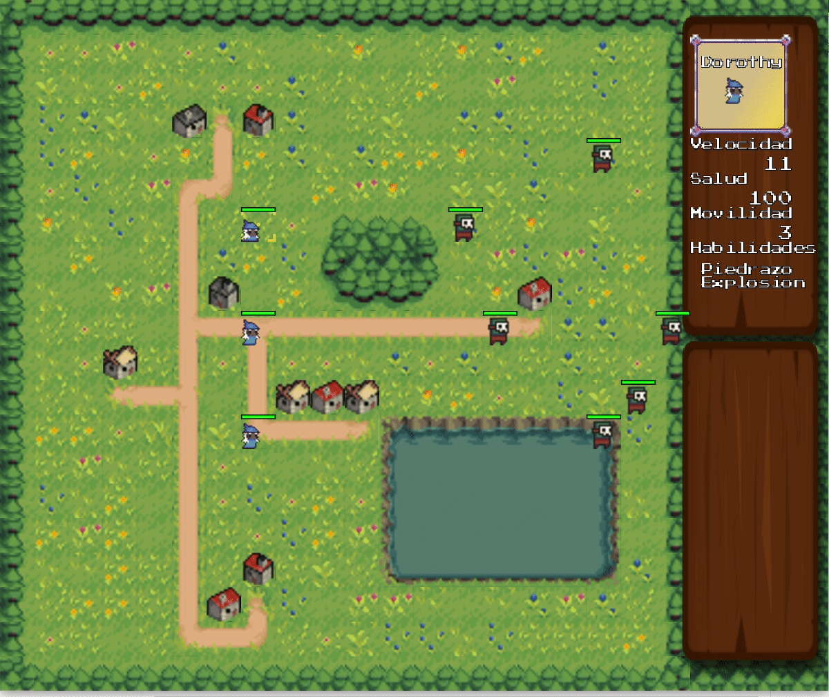 Con las flechitas podés mover el selector por el mapa, si lo dejás sobre algun personaje vas a poder ver a la derecha información sobre el personaje seleccionado: