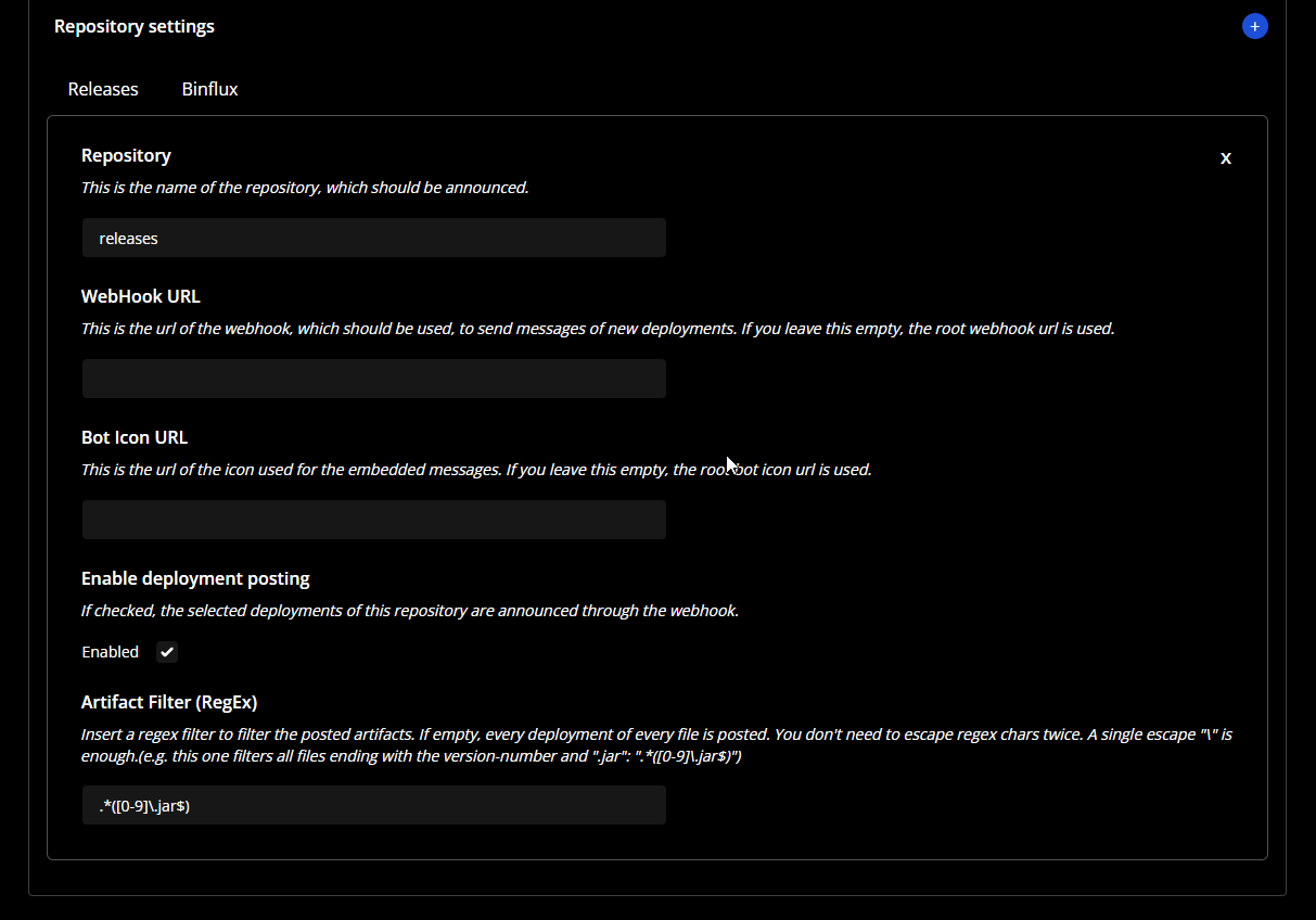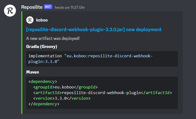 This plugin allows posting of artifact deployments on Reposilite via Discord webhooks.