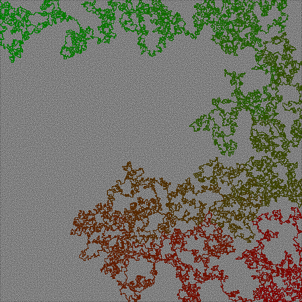 Here is a 500x500 maze generated (Image size is 1001x1001) using the maze generation algorithm as described further above. And it has been solved using the Dijkstra's algorithm implemented in this project.
