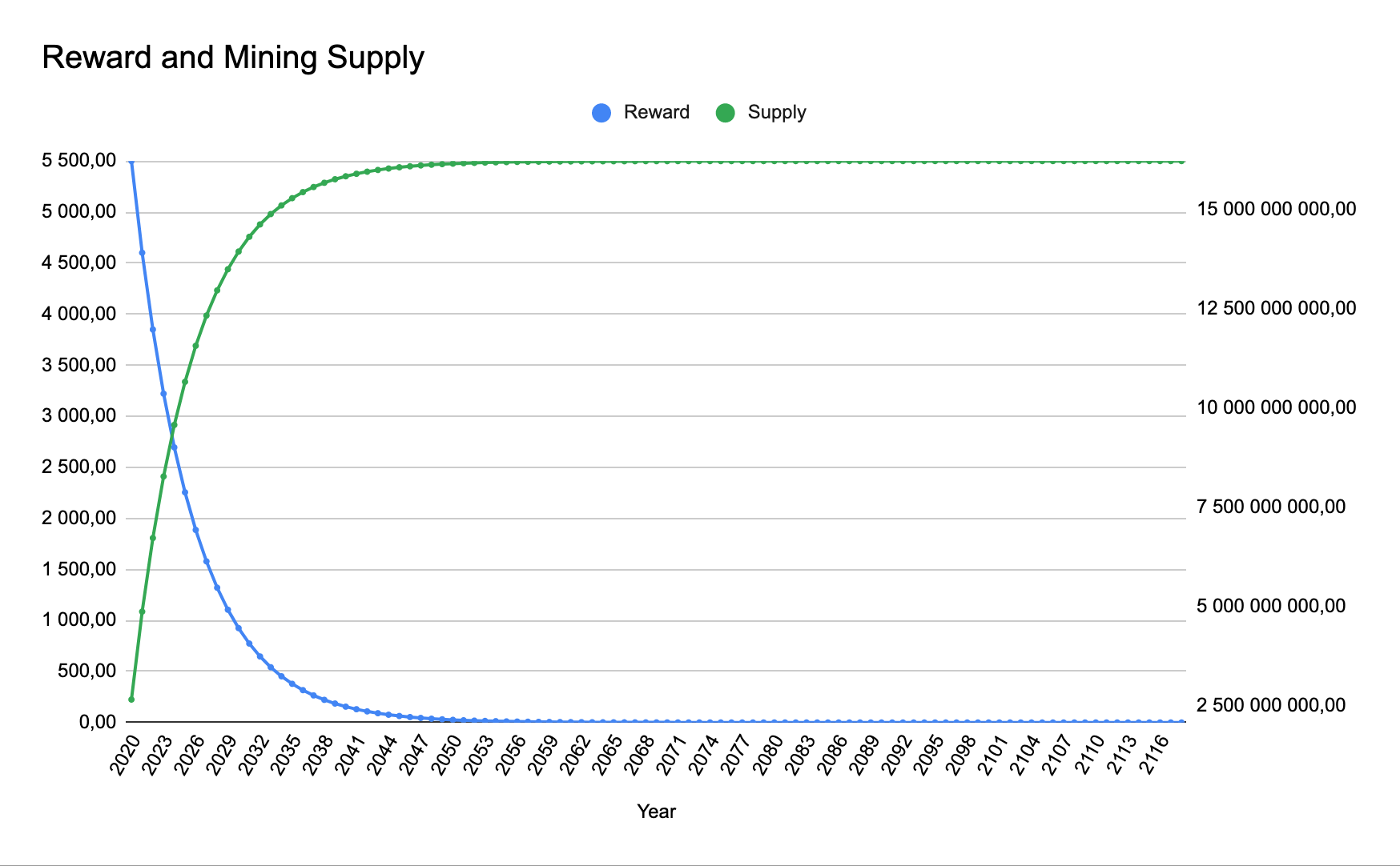 Graph for reward and mining supply: