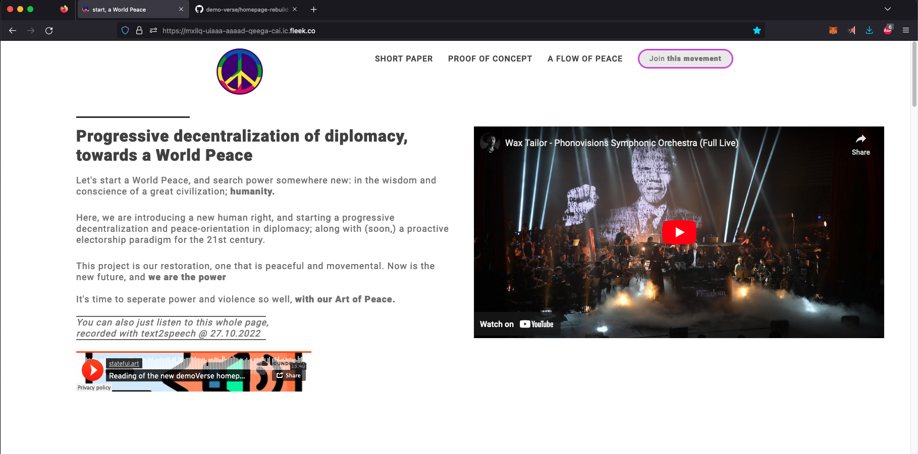 |> currently deployed to the Internet Computer, through fleek.co