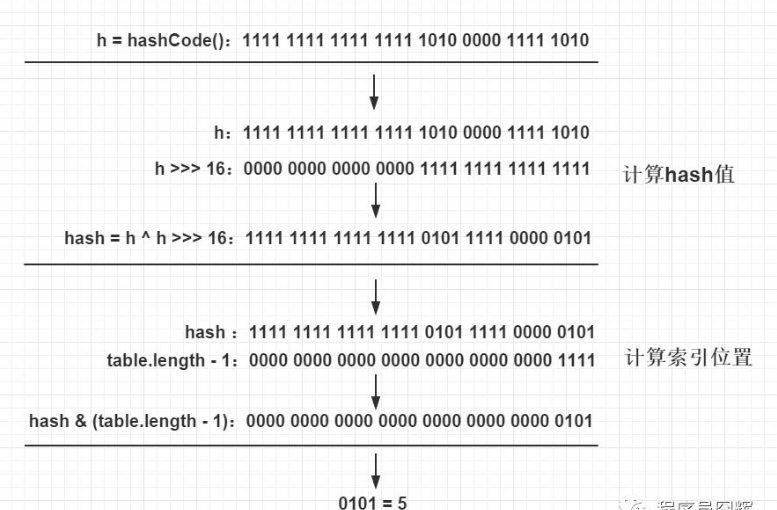 int index = (n - 1) & hash;整个过程本质上就是三步: 1.拿到 key 的 hashCode 值 2.将 hashCode 的高位参与运算,重新计算 hash 值 3.将计算出来的 hash 值与 (table.length - 1) 进行 & 运算