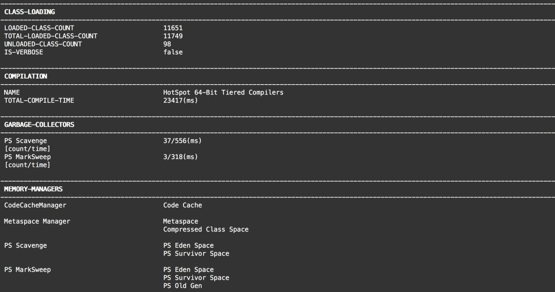 这个我们可以用dashboard命令来实时展示当前应用的多线程状态、Jvm各区域、GC情况等信息