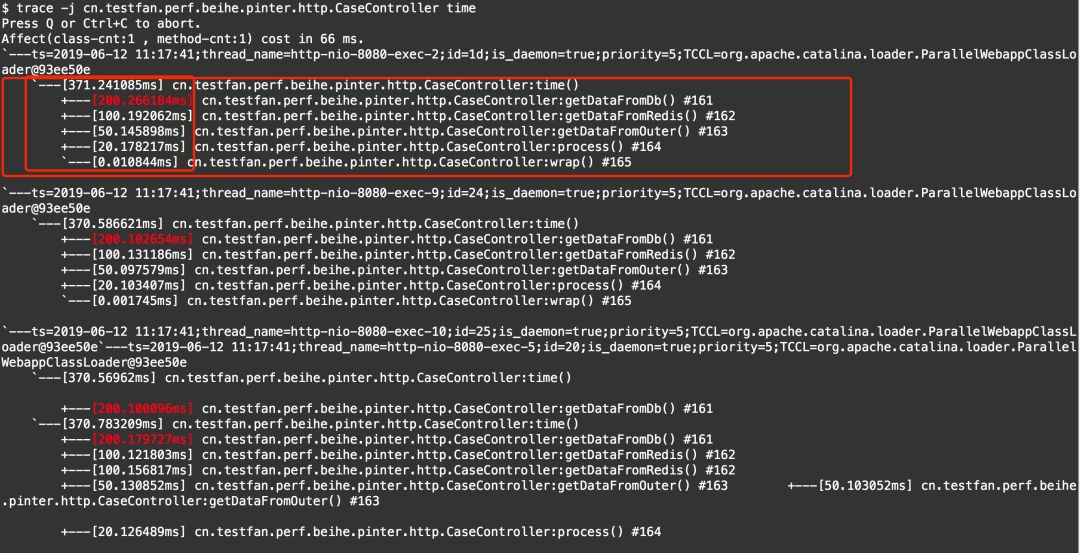 trace -jcn.testfan.perf.beihe.pinter.http.CaseController time解释: