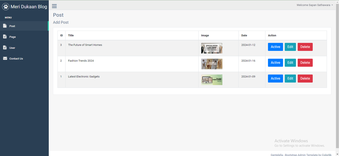 - Post Management Post List: Add, Update, Delete: Status Management: