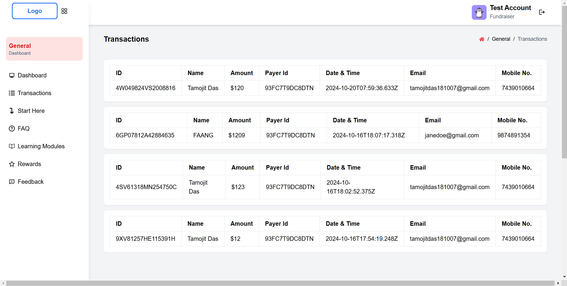 NayePankh-Fund-Raiser Application Walkthrough Home Page Auth Page Donation Dashboard Donation Page Link Donation History