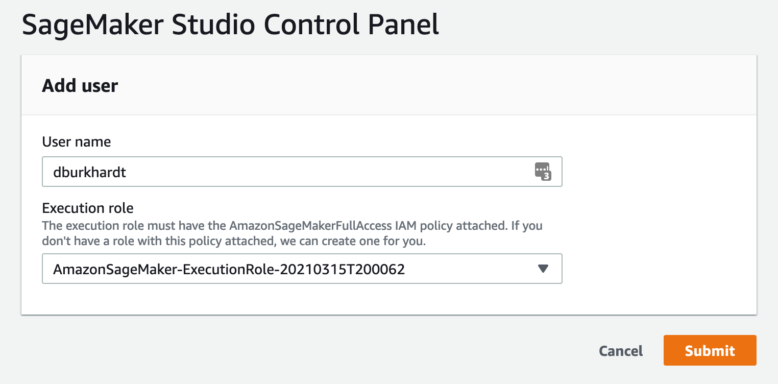 You only need to do this step if you haven't already created a user on the SageMaker Studio console for the domain you're using.