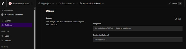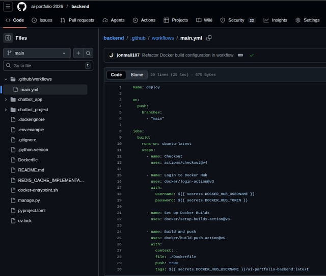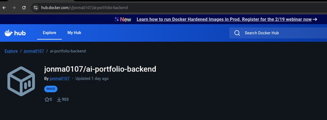La imagen resultante se llama ai-portfolio-backend (etiquetada por Docker Compose).
