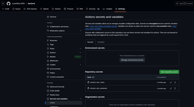 Para que GitHub Actions pueda subir la imagen a Docker Hub, primero se deben configurar las credenciales (usuario y token) en Settings > Secrets and variables > Actions del repositorio.