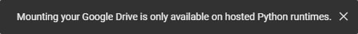 Mounting your Google Drive is only available on Hosted Runtime.