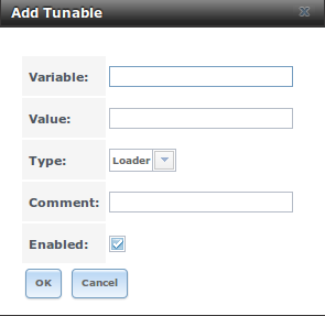 | 类型 | 下拉菜单 | 选择Loader, rc.conf, 或者Sysctl |