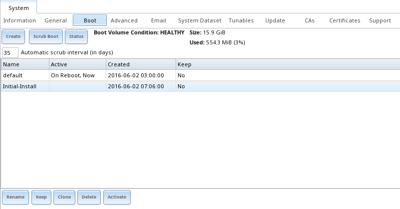 注意: FreeNAS®从GPT分区引导。 这意味着系统BIOS必须能够使用旧版BIOS固件(BIOS legacy)接口或EFI进行引导。