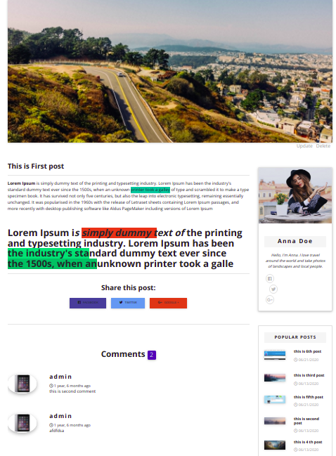 INSTALLATION run this command for install all packages for this project pip install -r requirements.txt Features Slider pagination latest post older post comment cattegory update delete feature with rich text editor and more.. Screenshots