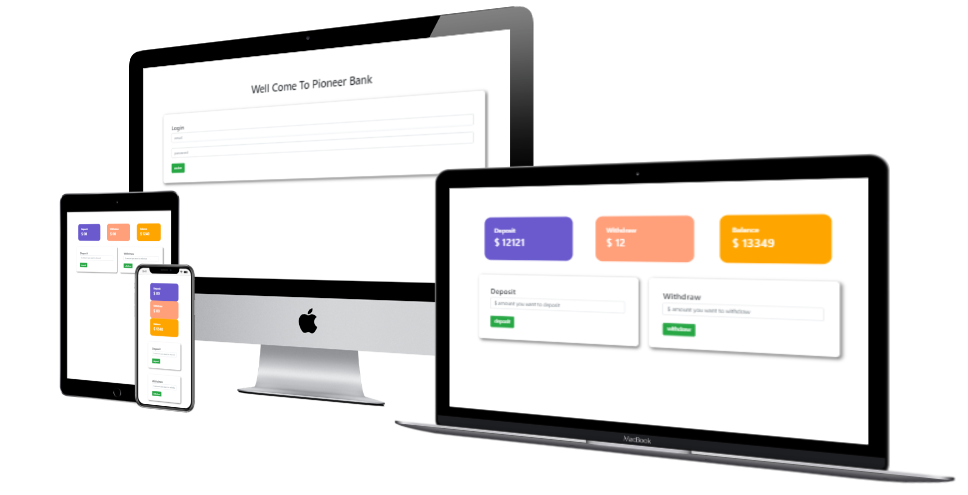 Website mockup with different devices This is the Automobile car company. techonology are uses JavaScript Html CSS live privew web link https://arifulislam10111999.github.io/pioneer-bank/