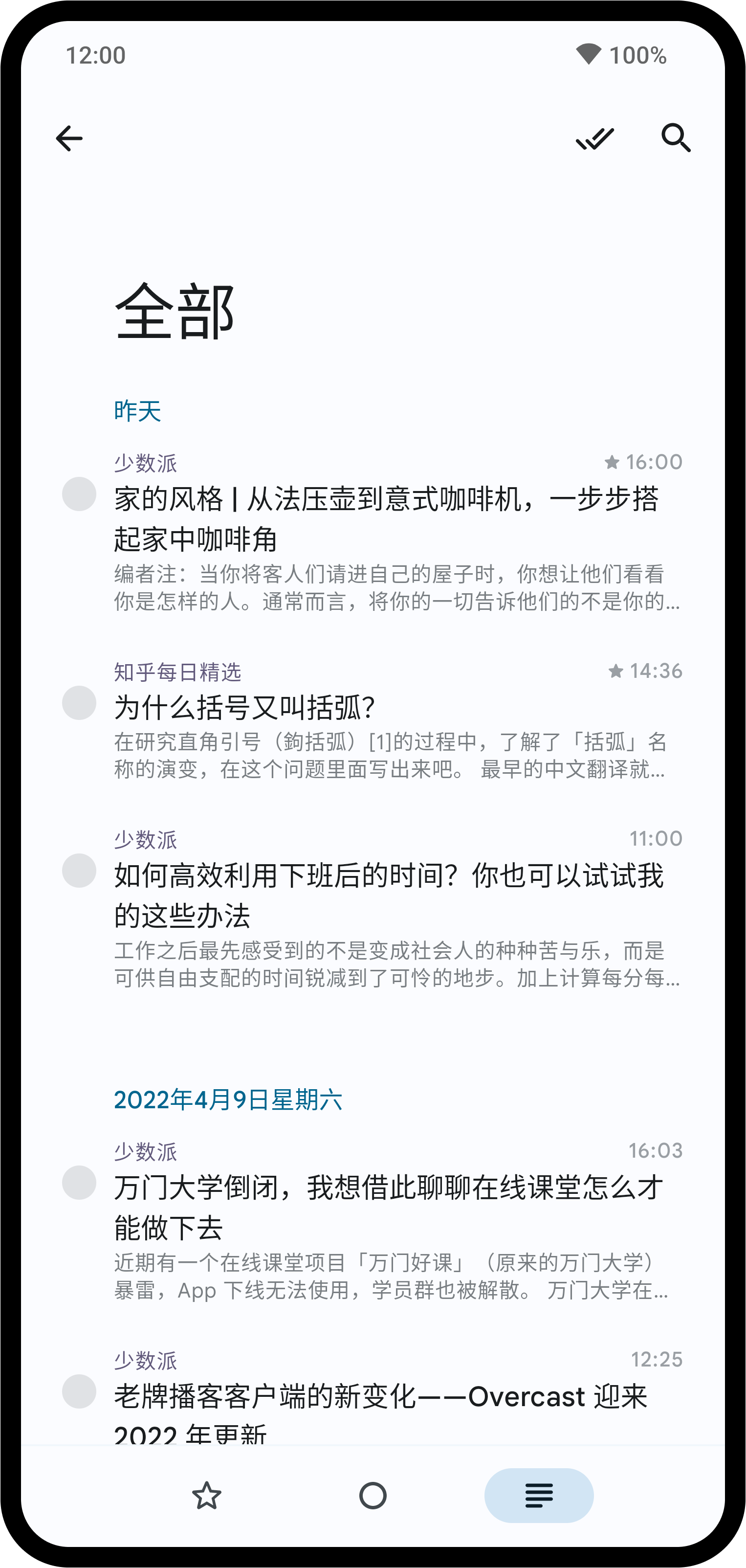Read You 結合了 Reeder 的交互邏輯與 Material Design 3 (You) 的設計風格。