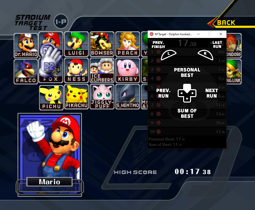 An automatic split timer for Super Smash Brothers Melee's Target Test, for use with Dolphin specifically.