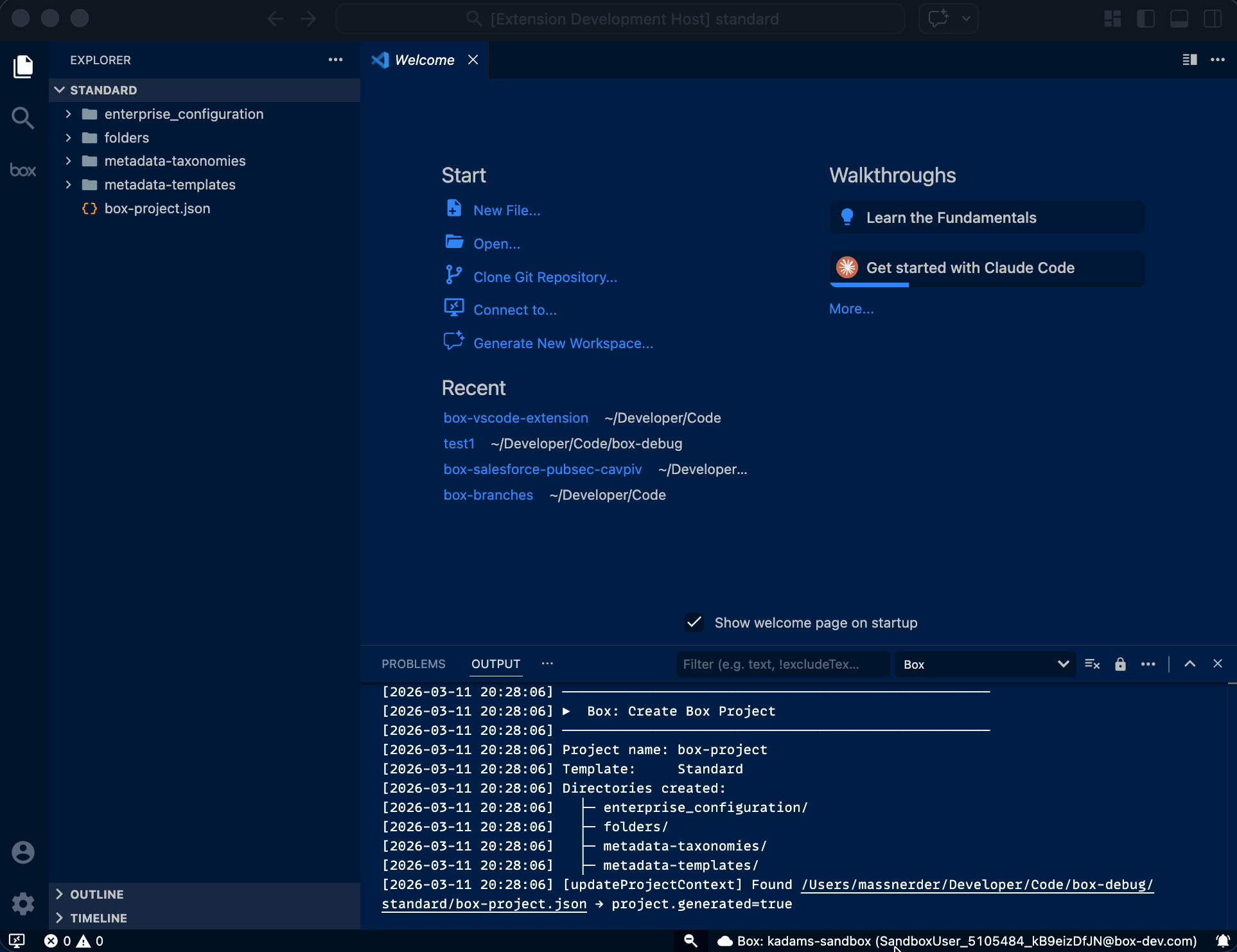 This generates a box-project.json file that activates the extension automatically.
