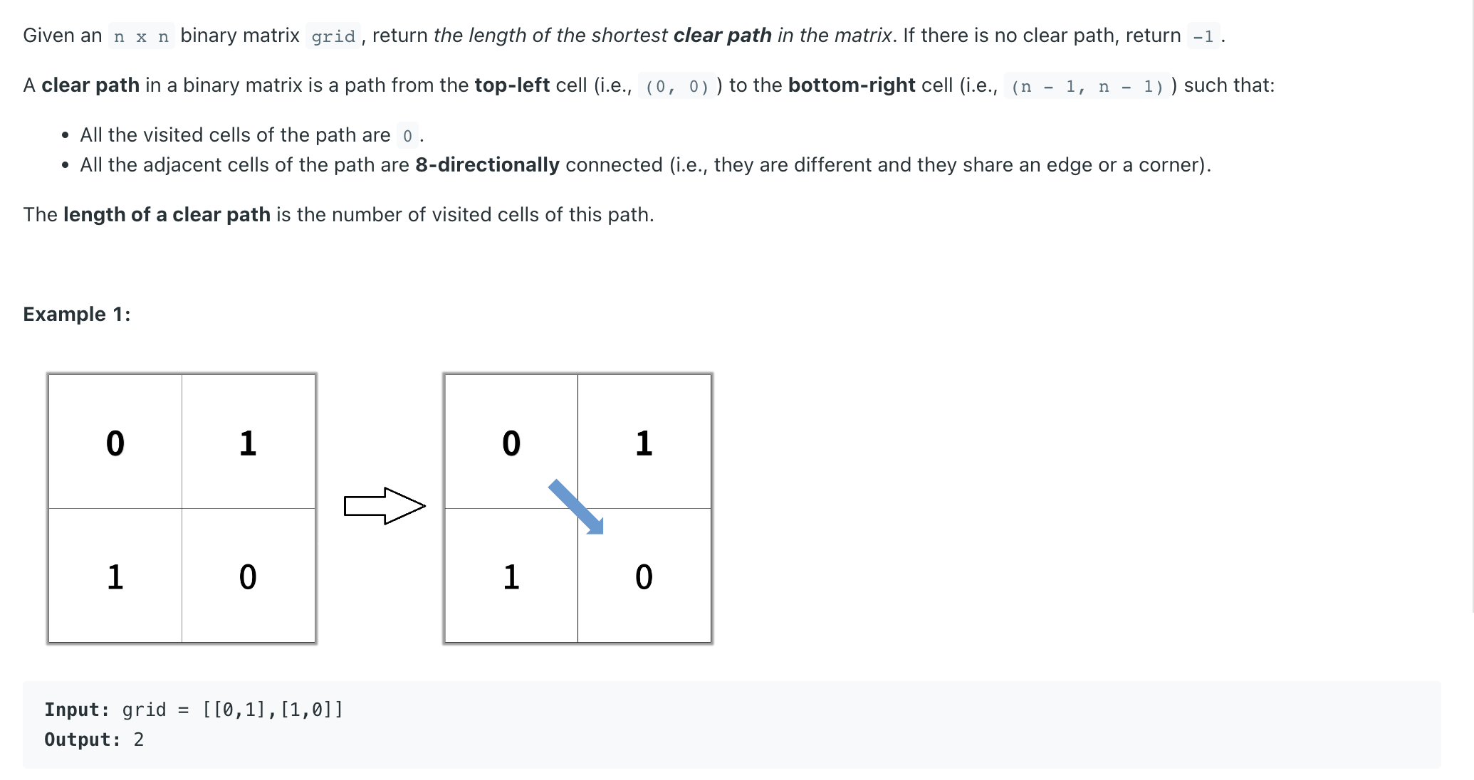 var shortestPathBinaryMatrix = function(grid) {