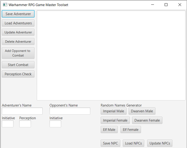 This application was developed for personal use as a tool for game master. It's original purpose was to track combat in Warhammer RPG 4th edition. Some additional features were added during development.