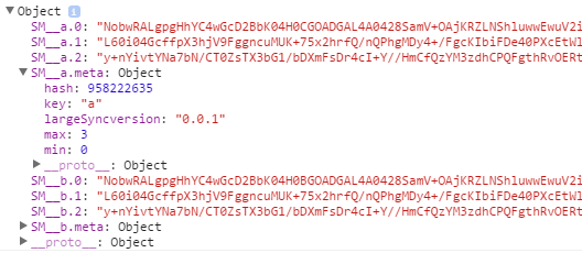 chrome.storage.largeSync.set(testObj);chrome.storage.sync will now contain something similar to this.