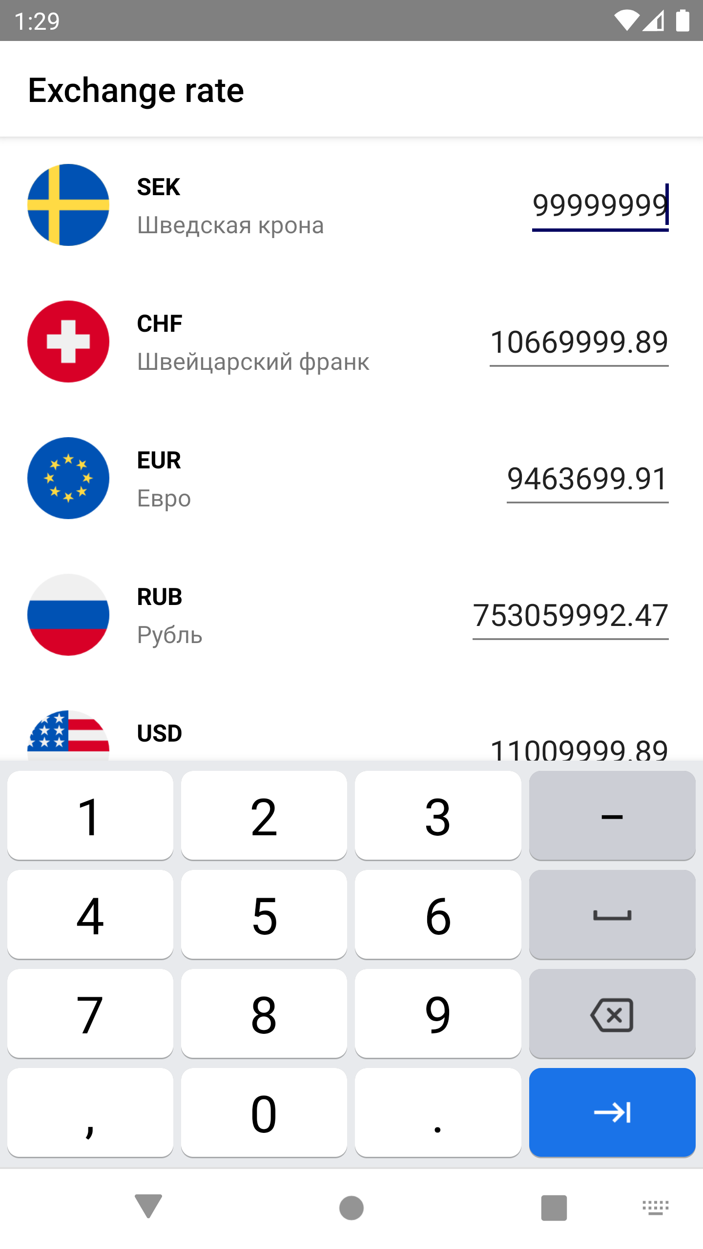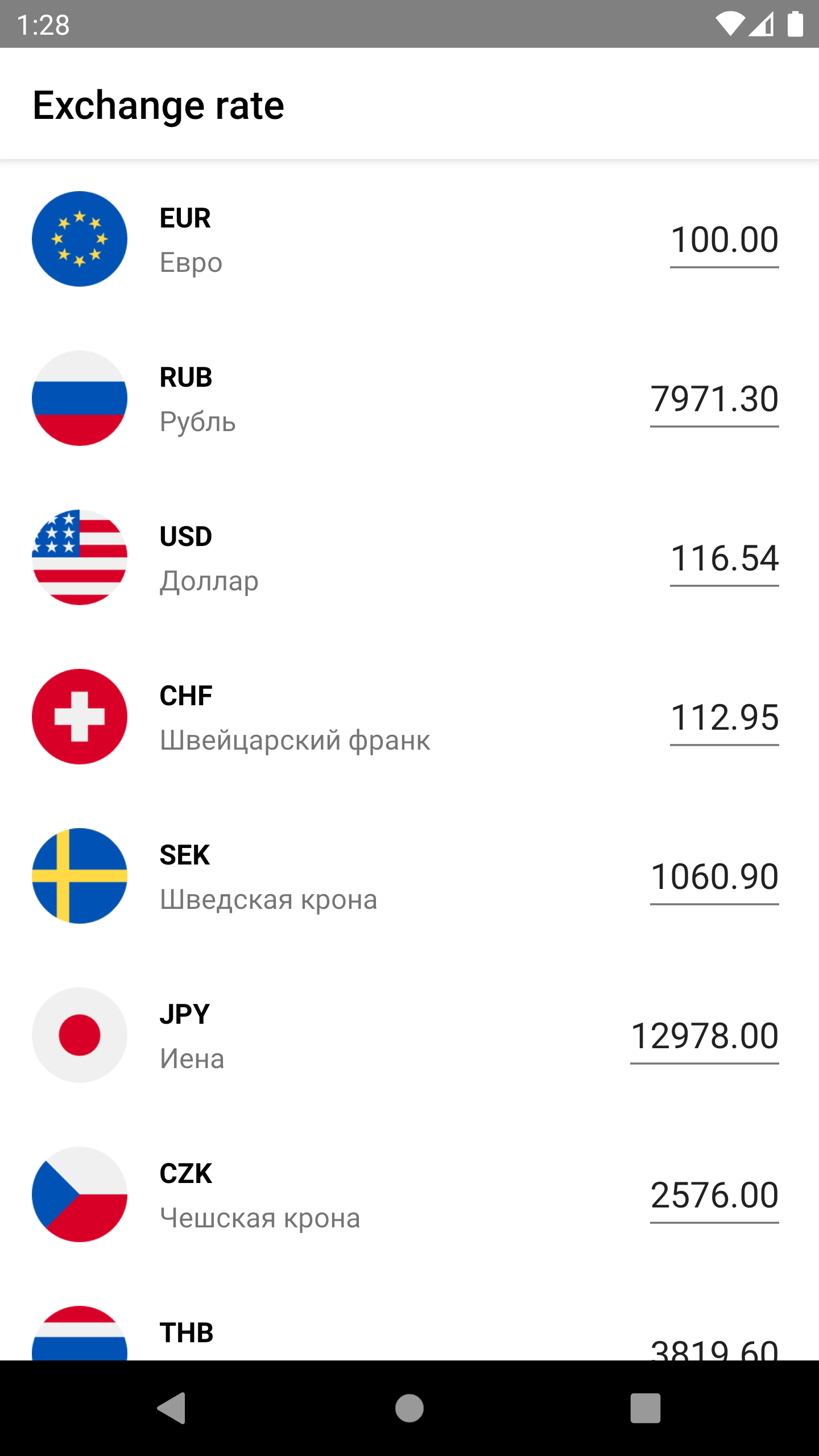 Demo application for showing a list of currency rates in real time. The list is updated every second.