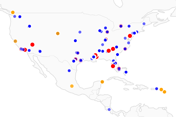 Marker color, opacity and size help emphasize noteworthy events. These values and their corresponding "keyword" triggers are defined in geoip.py https://github.com/ecapuano/gsuite-login-geoip/blob/master/geoip.py#L92-L111