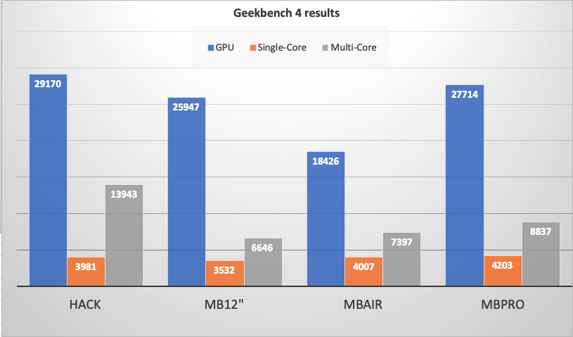 - CPU : Intel Core i5-8250U (base 1.6GHz, boost 3.6GHz, syntetic load stable 2.4GHz, cinebench 1200pts)