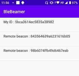 When you launch the app, it assigns a random ID to the device which starts getting advertised around as BLE beacon. At the same time, it listens to nearby devices that are using this app and displays their ID.