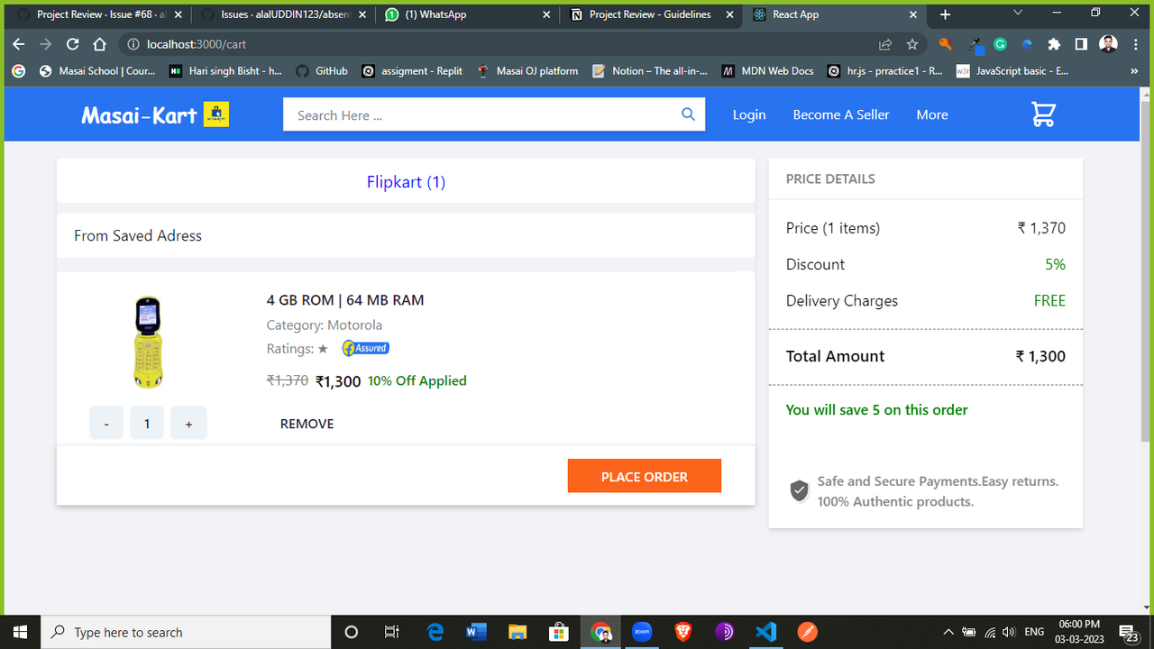 Cart page : 👍 (Shubham Verma)