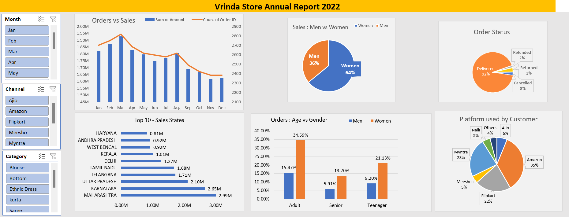 This is an Excel-Based Report to analyse the sales of the Vrinda store and provide them insights which will benefit their business Development.