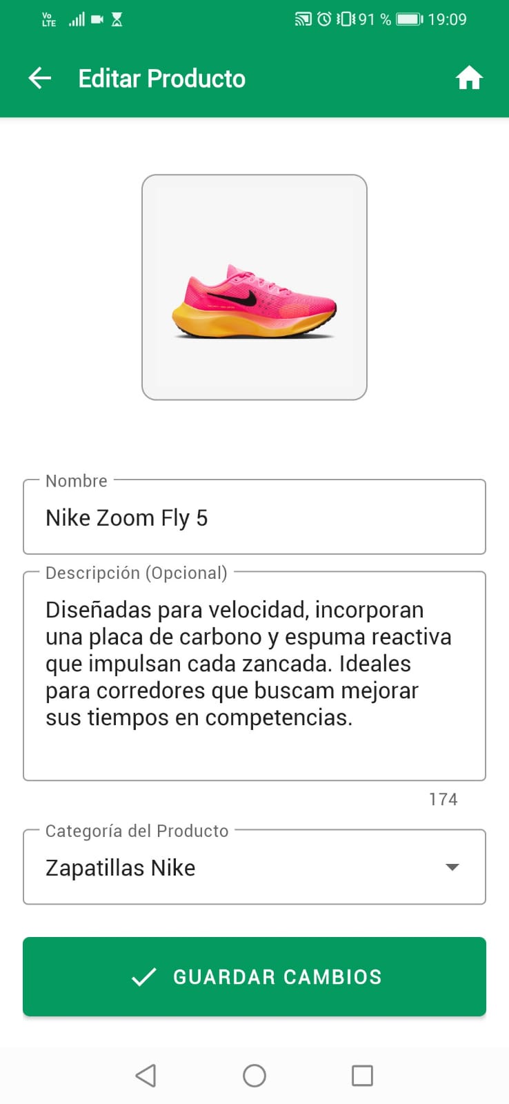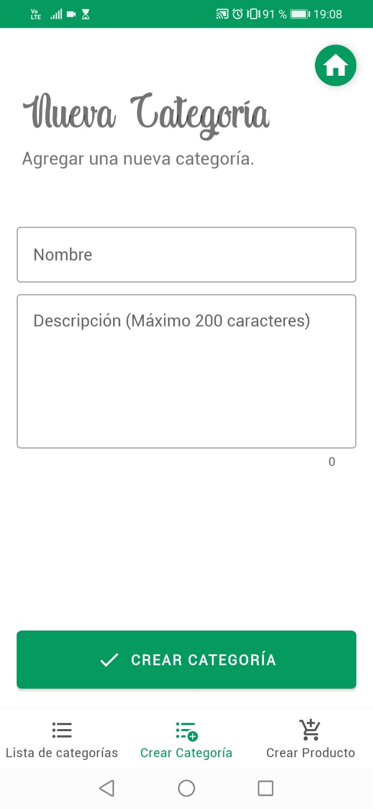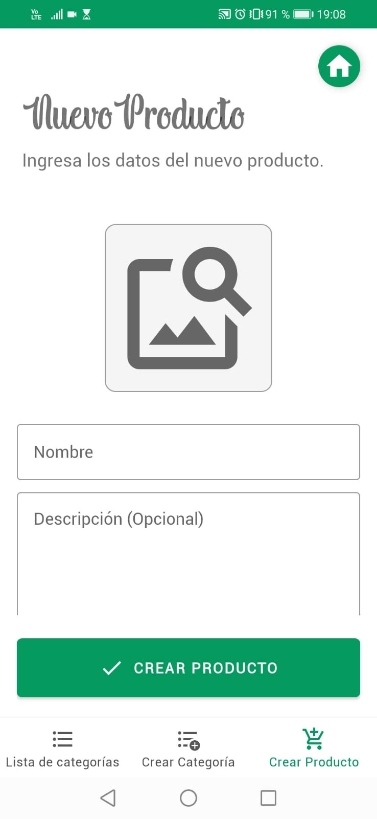 | Registrar Categoría | Registrar Producto | Lista Productos | Editar Producto |