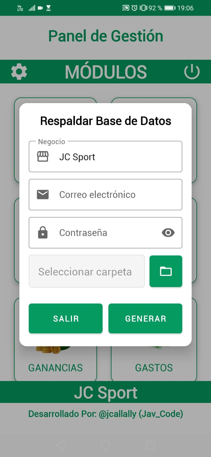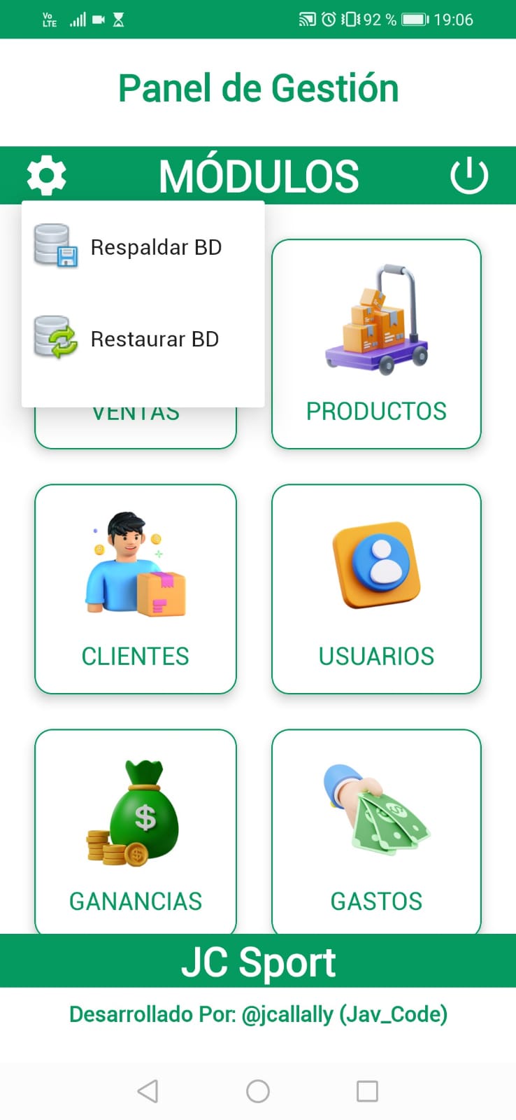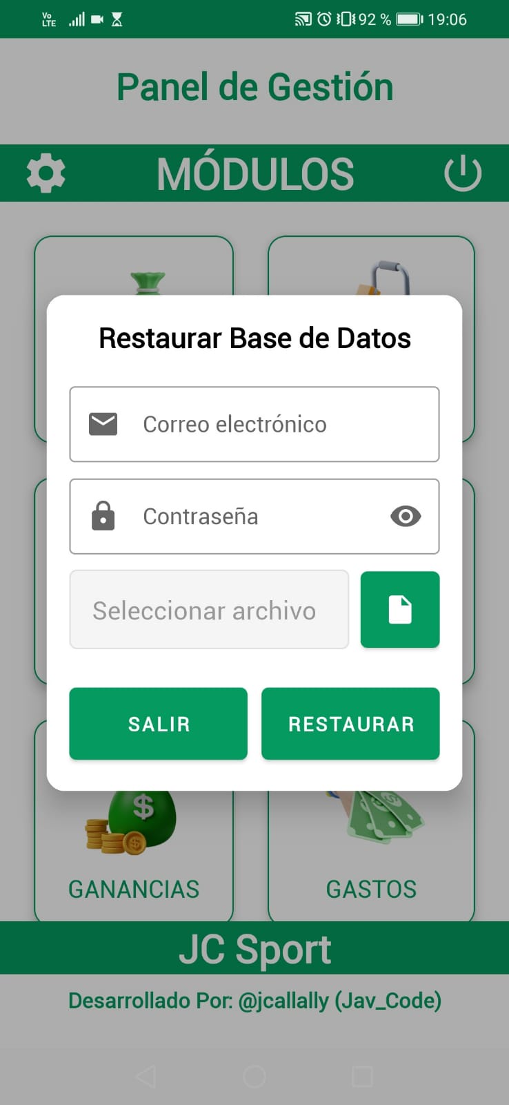 - Usa el menú de configuración para respaldar o restaurar la base de datos.