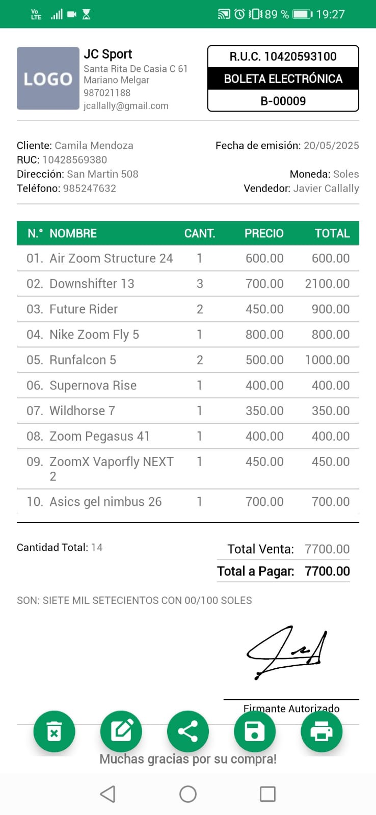 - Genera, comparte o imprime comprobantes de venta desde la app.