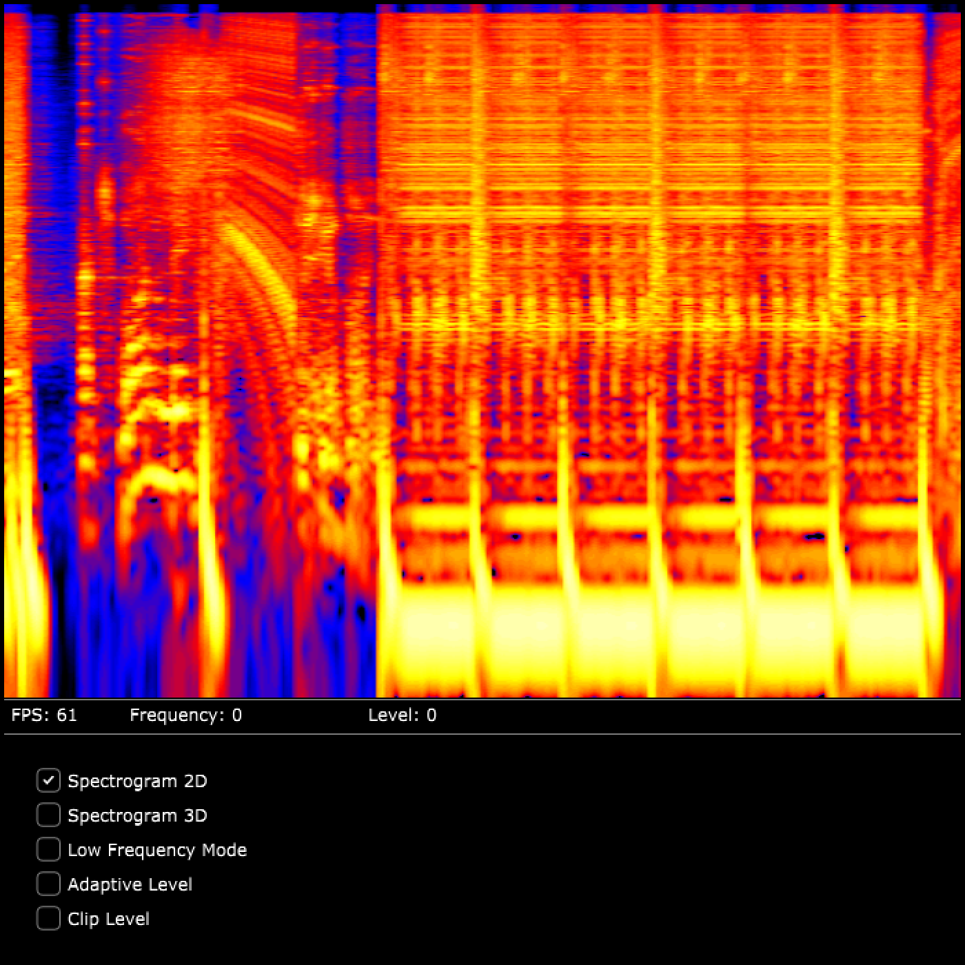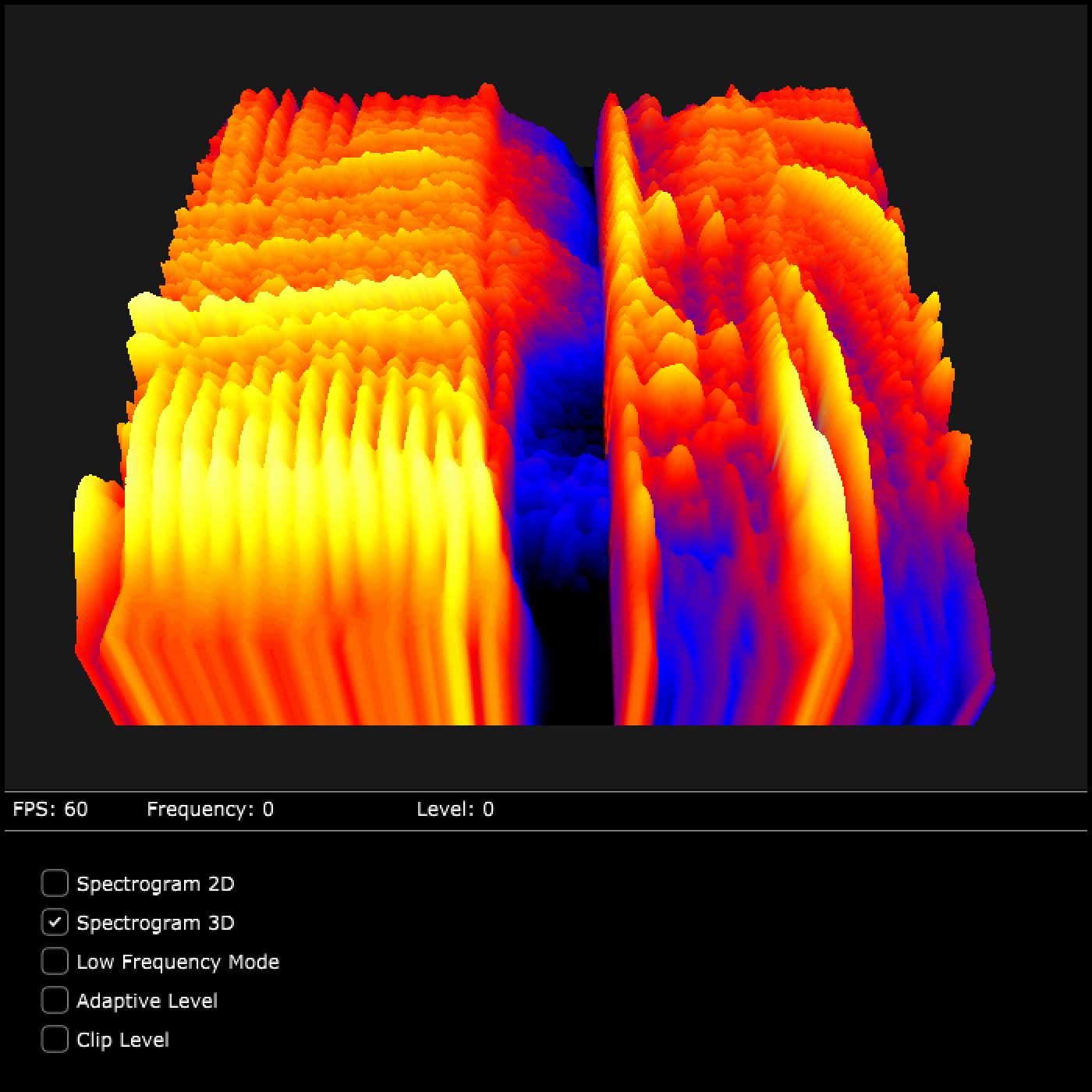 3DQ is a simple 2D & 3D spectrogram visualizer aiming to make efficient use of computer graphics in a real-time audio system. 2D: 3D: