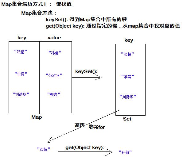 //1: Map集合方法keySet(),获取到存储所有键的Set集合