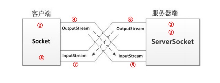 java.net.Socket类表示。创建Socket对象,向服务端发出连接请求,服务端响应请求,两者建立连接开始通信。 - 服务端: