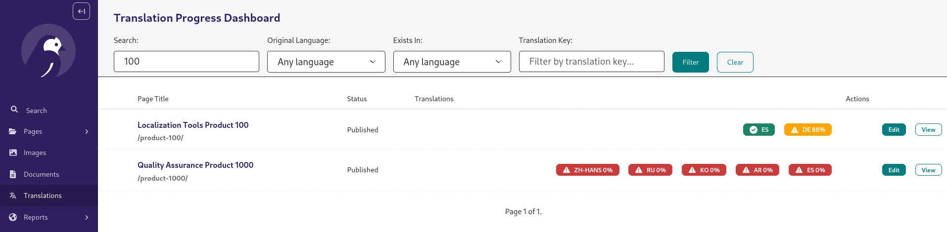 ]python manage.py migrate wagtail_localize_dashboardpython manage.py rebuild_translation_progressNavigate to /translations/ in your Wagtail admin, or click "Translations" in the admin menu.
