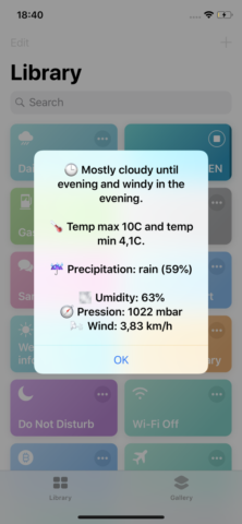 "Daily Forecast for DarkSky" provides day by day forecast (Today, Tomorrow, day after Tomorrow, this Saturday and this Sunday), using DarkSky as a main provider. It uses GPS to locate the user.