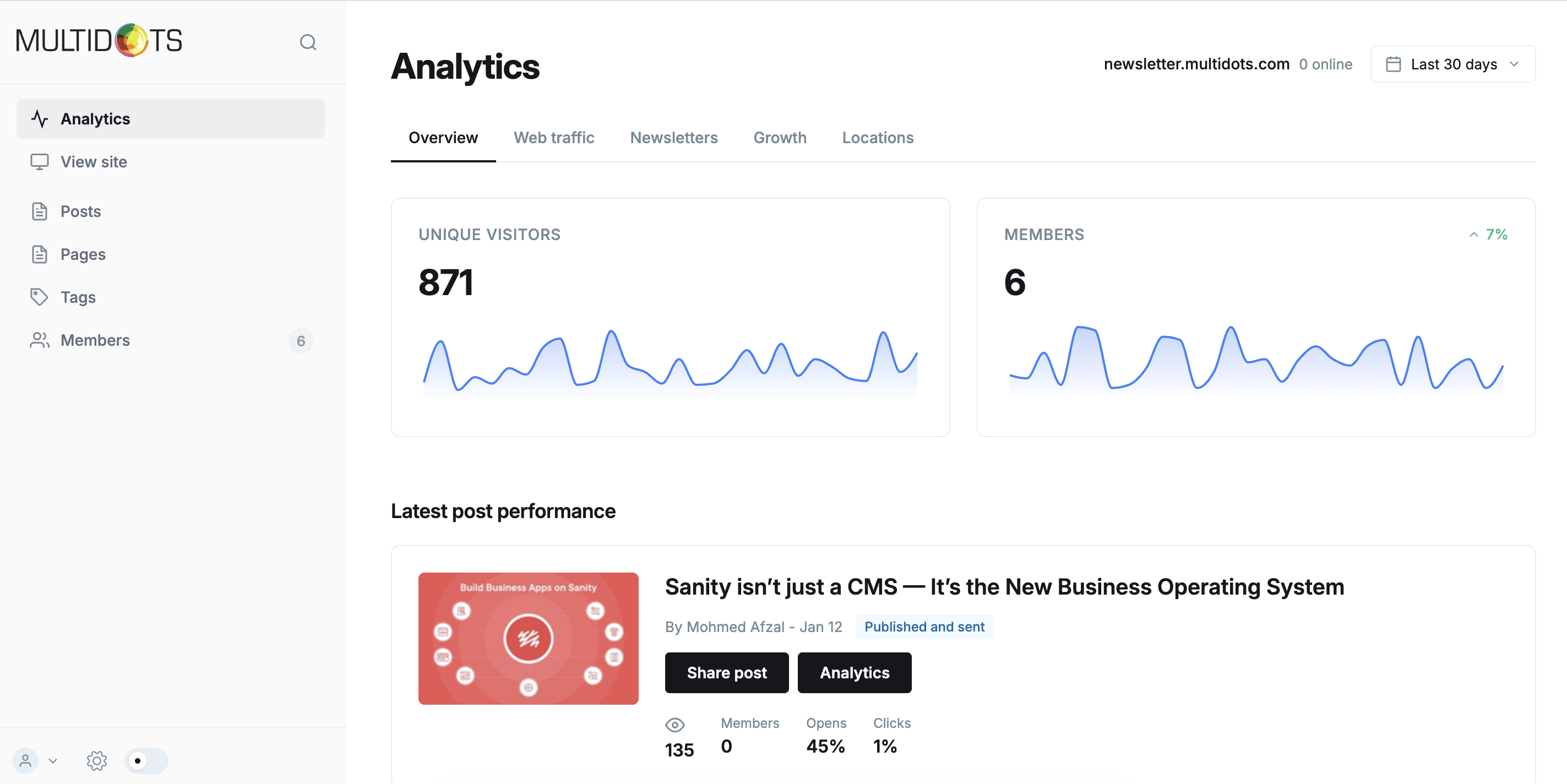 - Post performance metrics (views, opens, clicks)