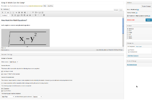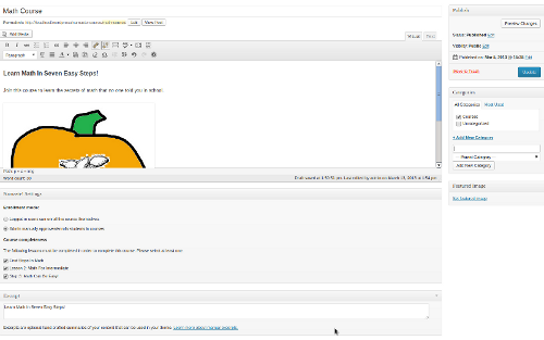 Courses are custom post types and support rich formatting, categorization, etc. The course page is a presentation page about the course content.