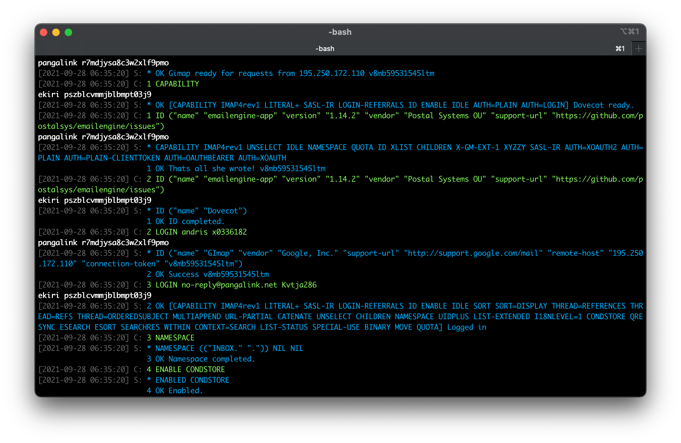 EmailEngine logs all output in Pino format. If EENGINE_LOG_RAW=true environment variable or --log.raw=true argument is set then EmailEngine also includes raw data sent to and read from the IMAP socket. This utility displays these logs in human readable form.