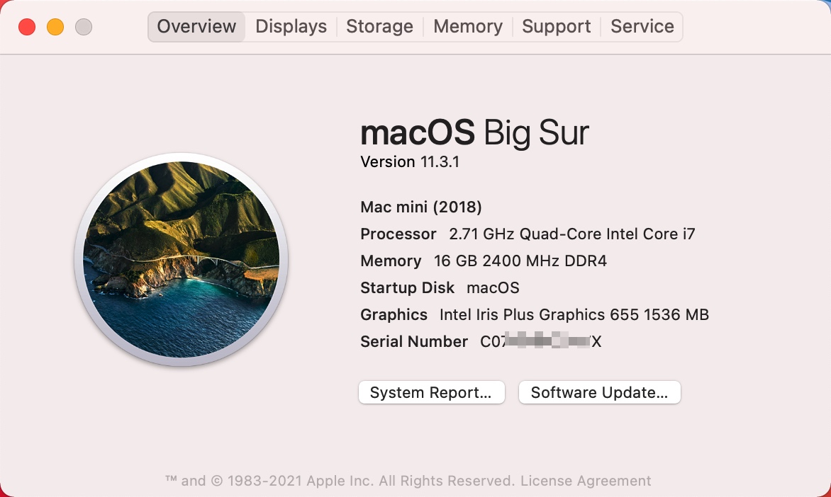 - CPU: Intel i7-8559U, 4c/8t, base 2.7Ghz, turbo 4.5Ghz, 28w TDP.
